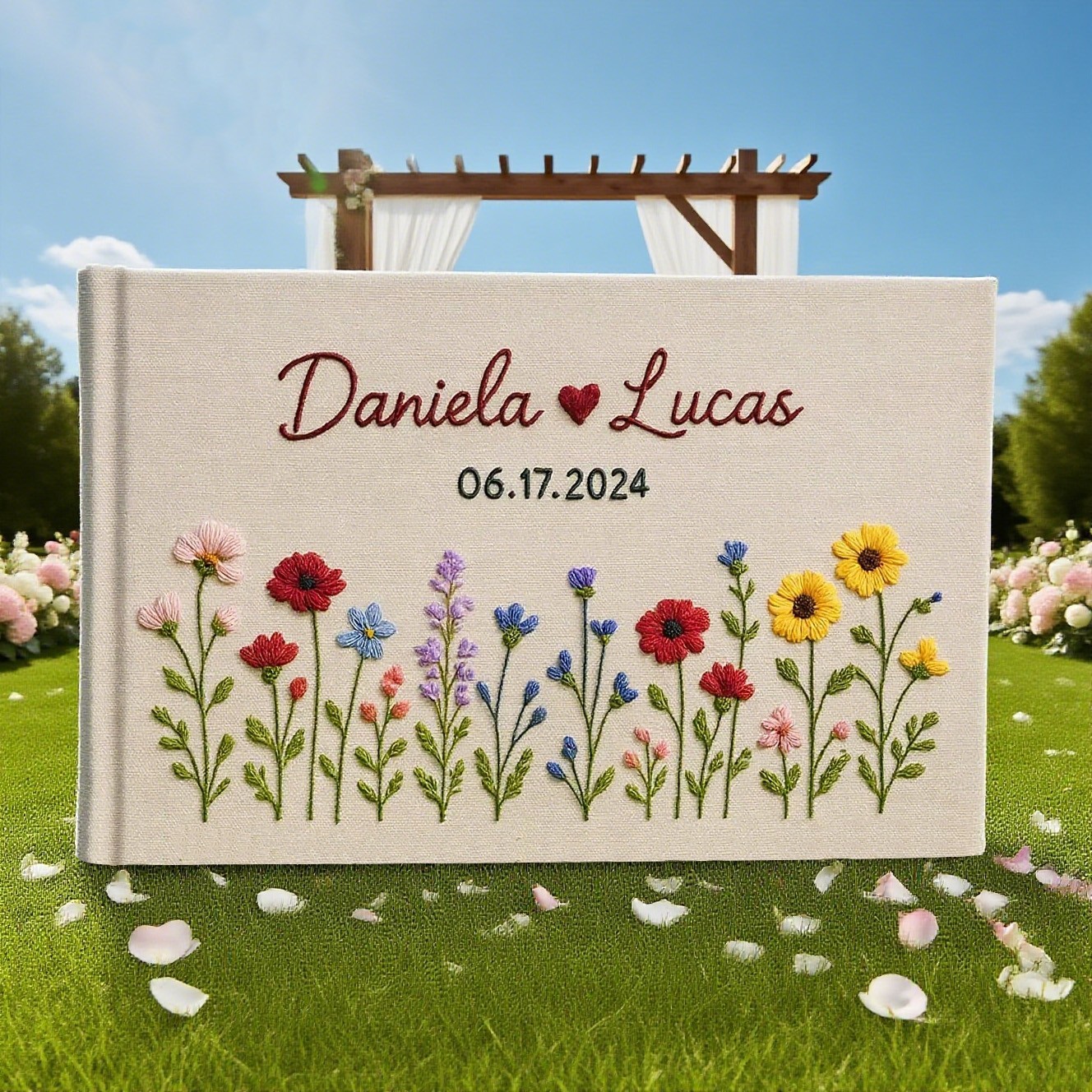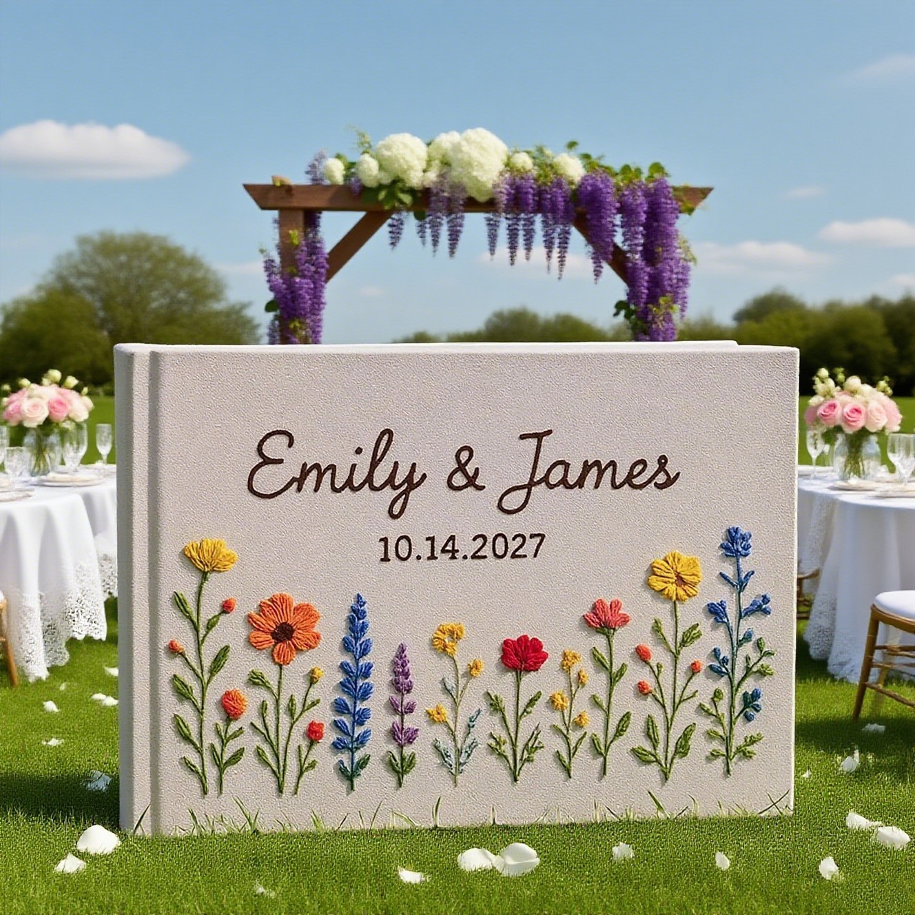Custom Floral Hand Embroidered Wedding Guest Book Personalised Memory Book Gifts for Couple Unique Wedding Gift