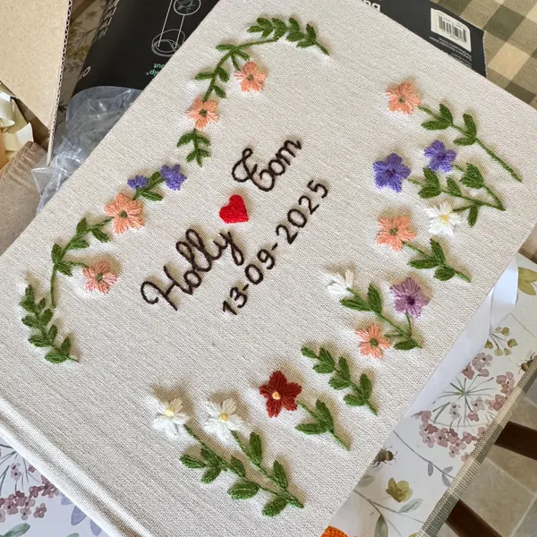 Custom Floral Hand Embroidered Wedding Guest Book Personalised Memory Book Gifts for Couple Unique Wedding Gift
