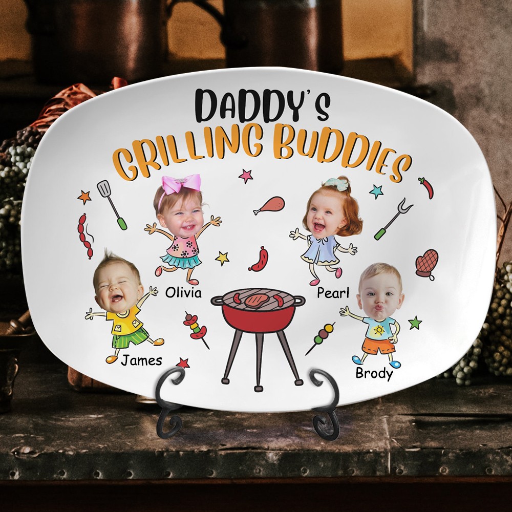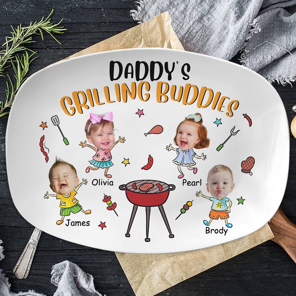 Custom Funny Daddy's Grilling Plate with Photo and Kids Name Keepsake Gifts Father's Day Gift Ideas
