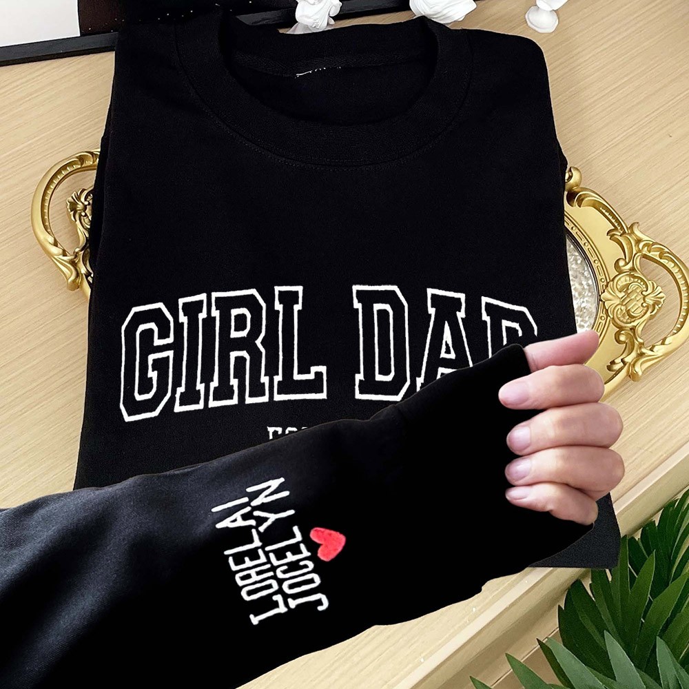Custom Girl Dad Embroidered Sweatshirt Hoodie With Kids Names On the Sleeve Father's Day Gift Ideas