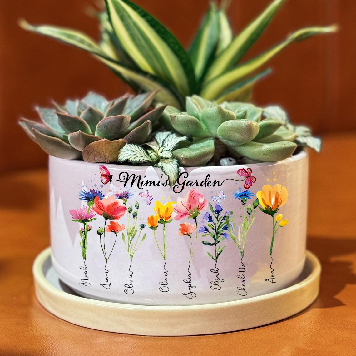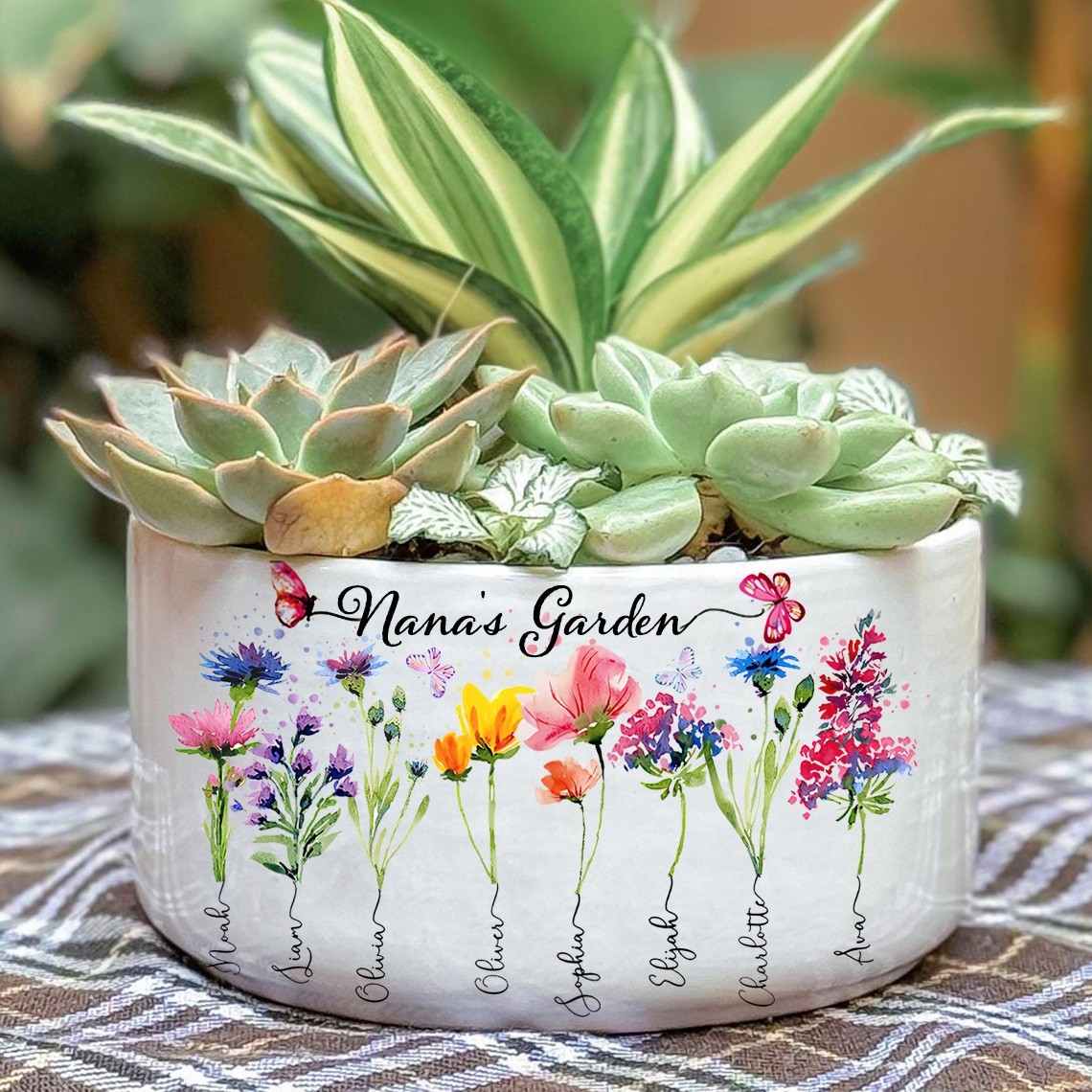 Custom Grandma's Garden Birth Flower Mini Succulent Plant Pot with Grandkids Names Gift for Grandma Mum Mother's Day Gifts
