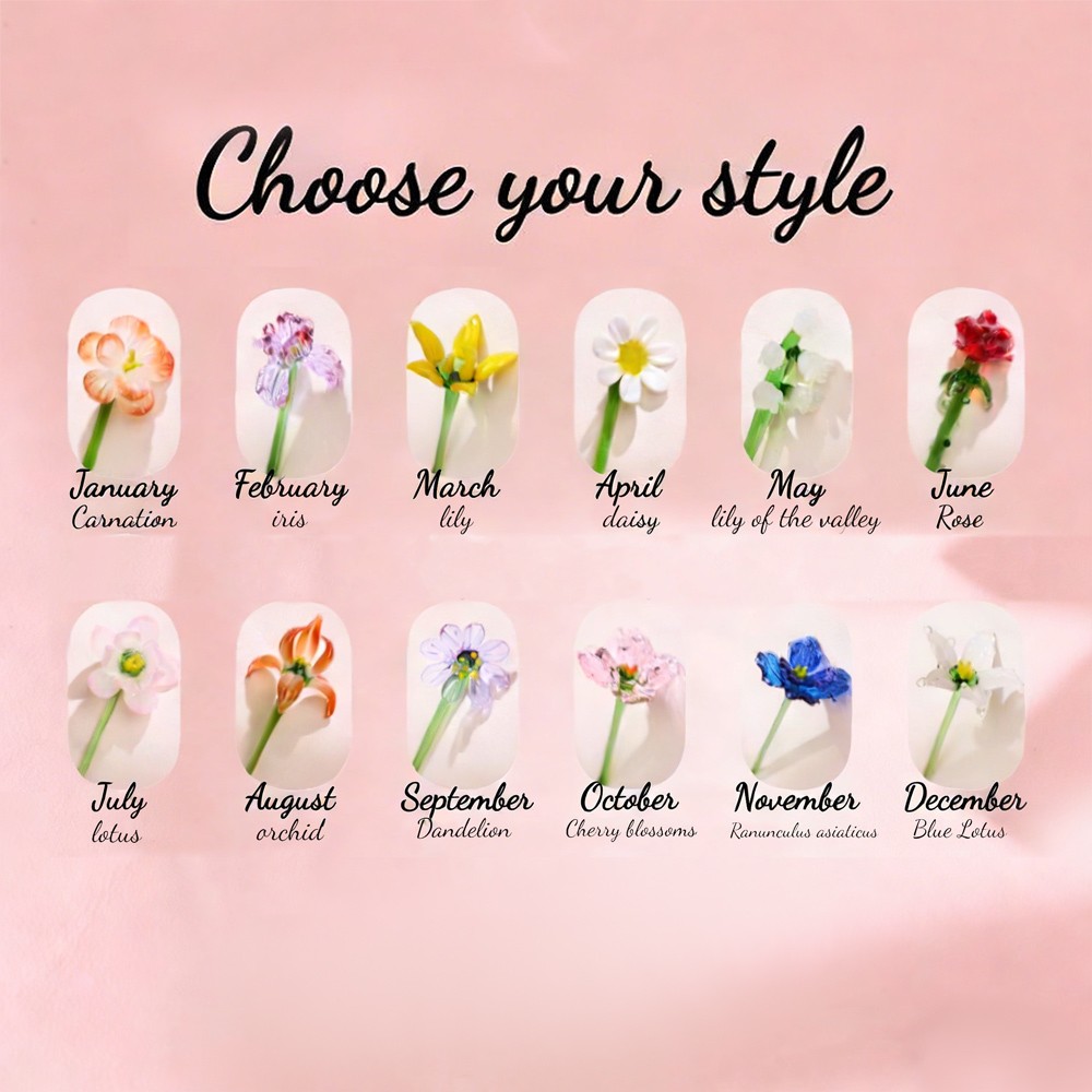 -- Select 12th Flower Type -- January-Carnation February-Iris March-Lily April-Daisy May-Lily of the Valley June-Rose July-Lotus August-Orchid September-Dandelion October-Cherry Blossom November-Ranunculus asialicus December-Blue Lotus