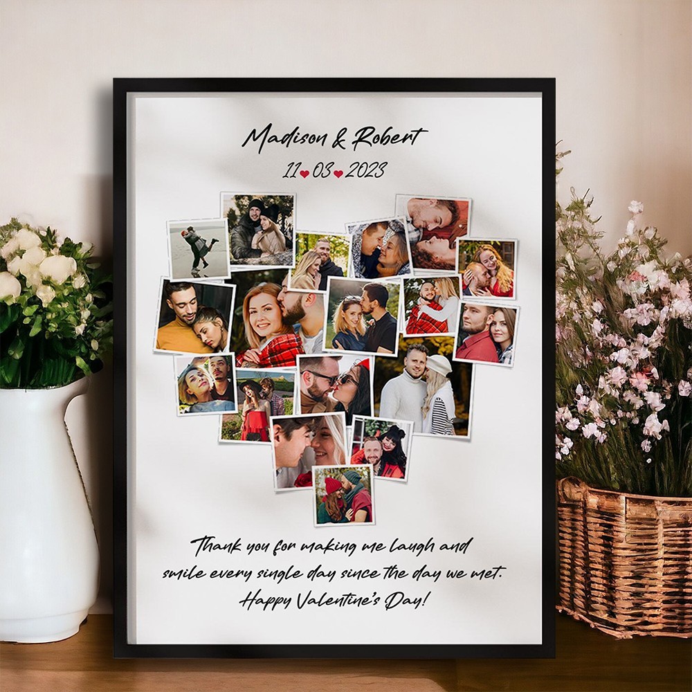 Custom Heart Shape Photo Collage Print Frame Gifts for Couples Anniversary Gift Unique Valentine's Day Gifts