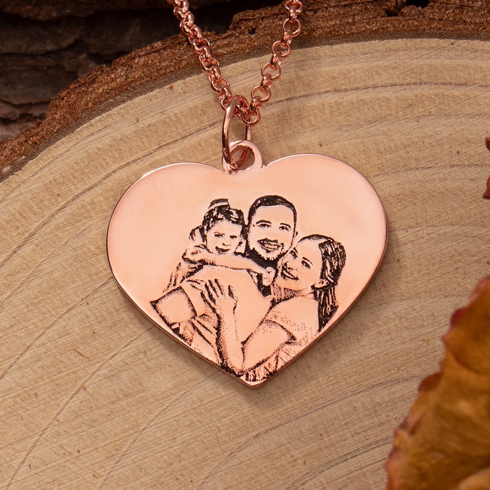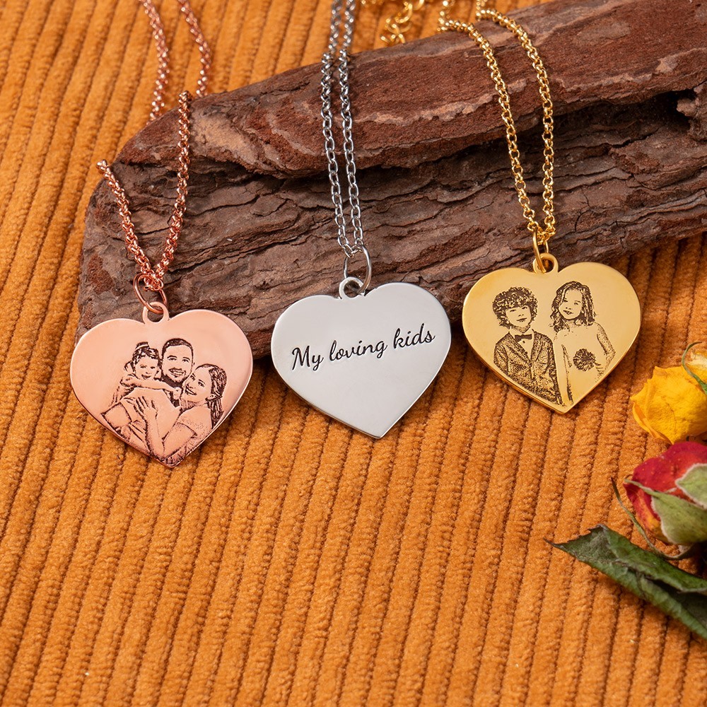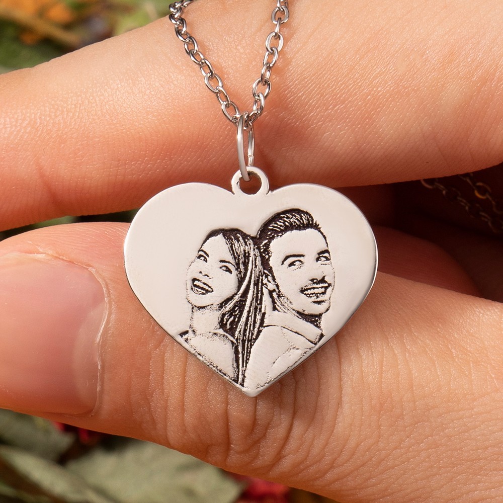 Custom Heart Shaped Engraved Portrait Photo Necklace for Couples Gift for Her Anniversary Gifts Valentine's Day Gift