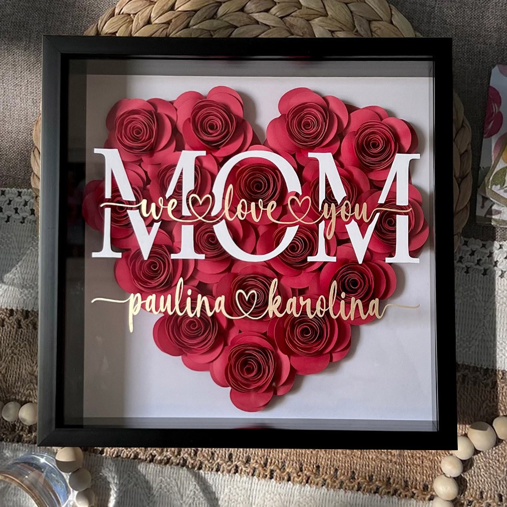 Custom Heart Shaped Mum We Love You Flower Shadow Box With Kids Names Unique Gift For Mum Grandma Christmas Gifts