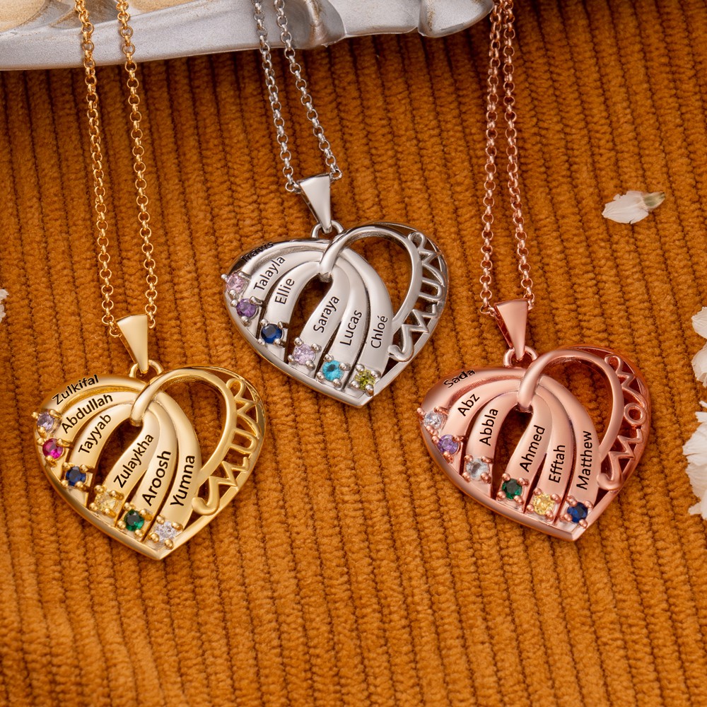 Custom Heart Shaped Name Necklace with Birthstone Design For New Mum Unique Gift for Mum Grandma