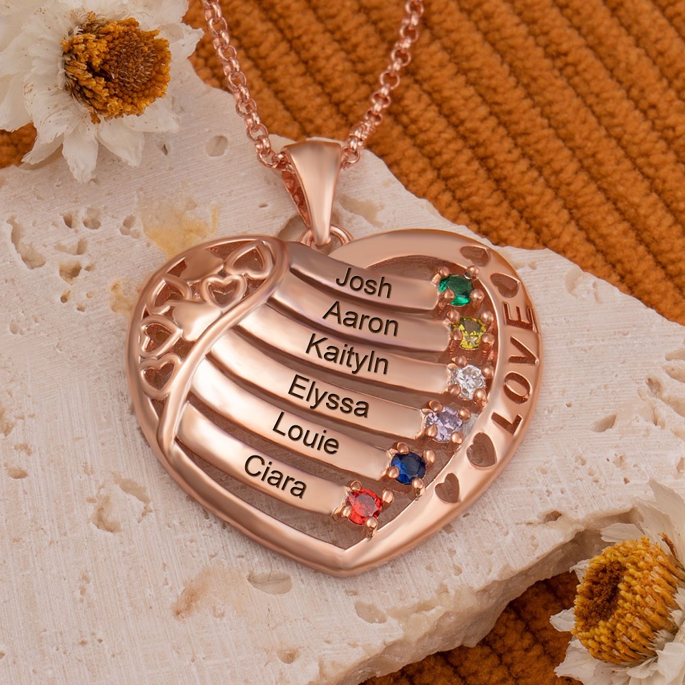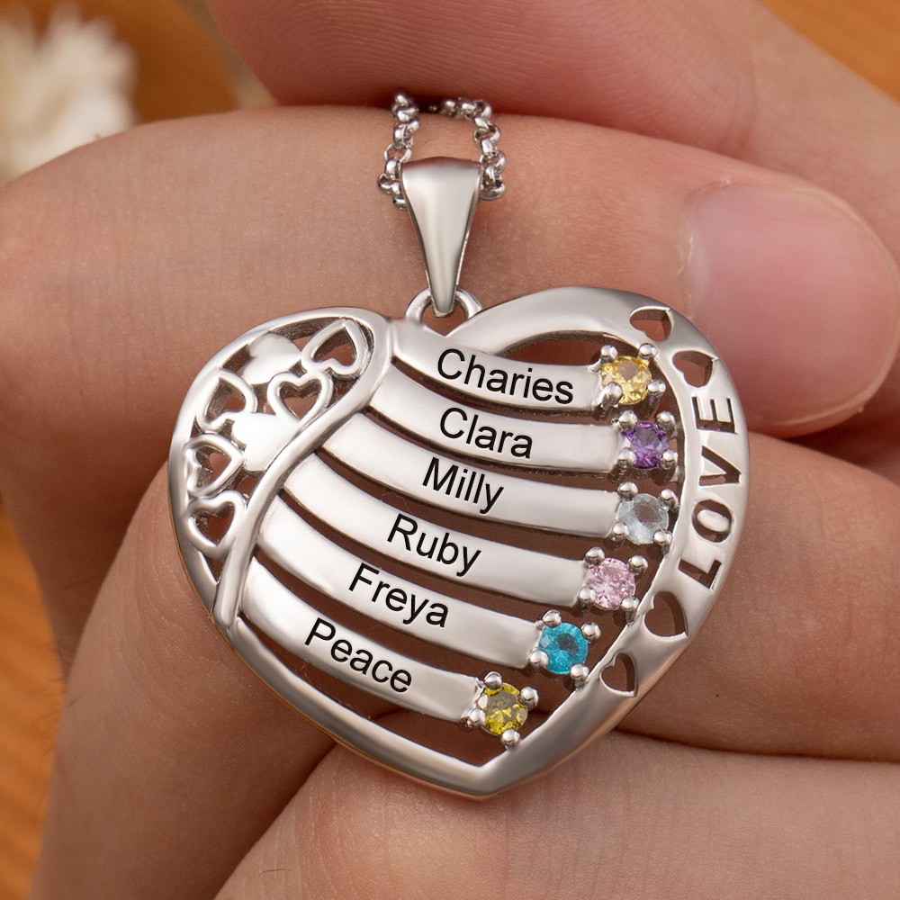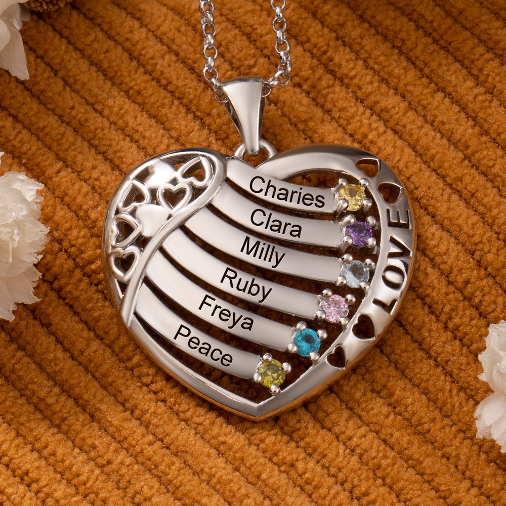 Custom Heart Shaped Necklace With Engraved Names And Birthstones Design Unique Gifts For Mum Grandma