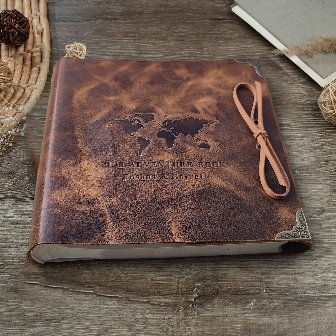 Custom Leather Scrapbook Adventure Book Unique Photo Album Keepsake Gifts for Wife Girlfriend Valentine's Day Gift for Couples