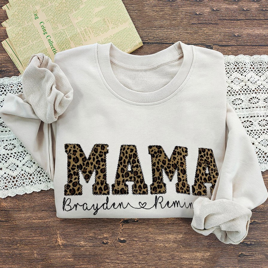 Custom Mama Leopard Print Embroidered Sweatshirt Hoodie Unique Gift For Mum Christmas Gift Ideas