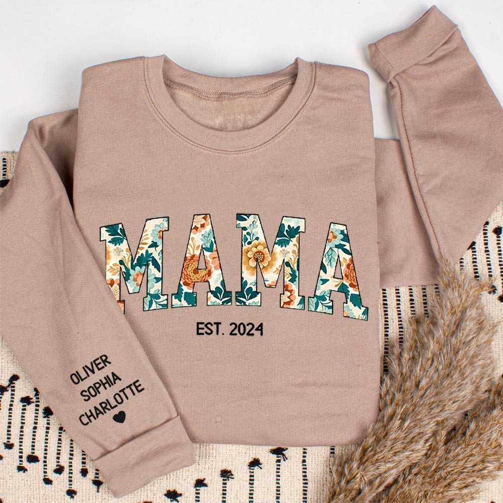 Custom Mama Sweatshirt with Kids Names on Sleeve Keepsake Gift for Mum New Mum Gift Mother's Day Gifts