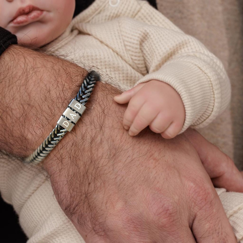 Custom Men's Gold Bracelet with Engraved Kids Names Gifts for Dad Keepsake Gift for Him Father's Day Gift