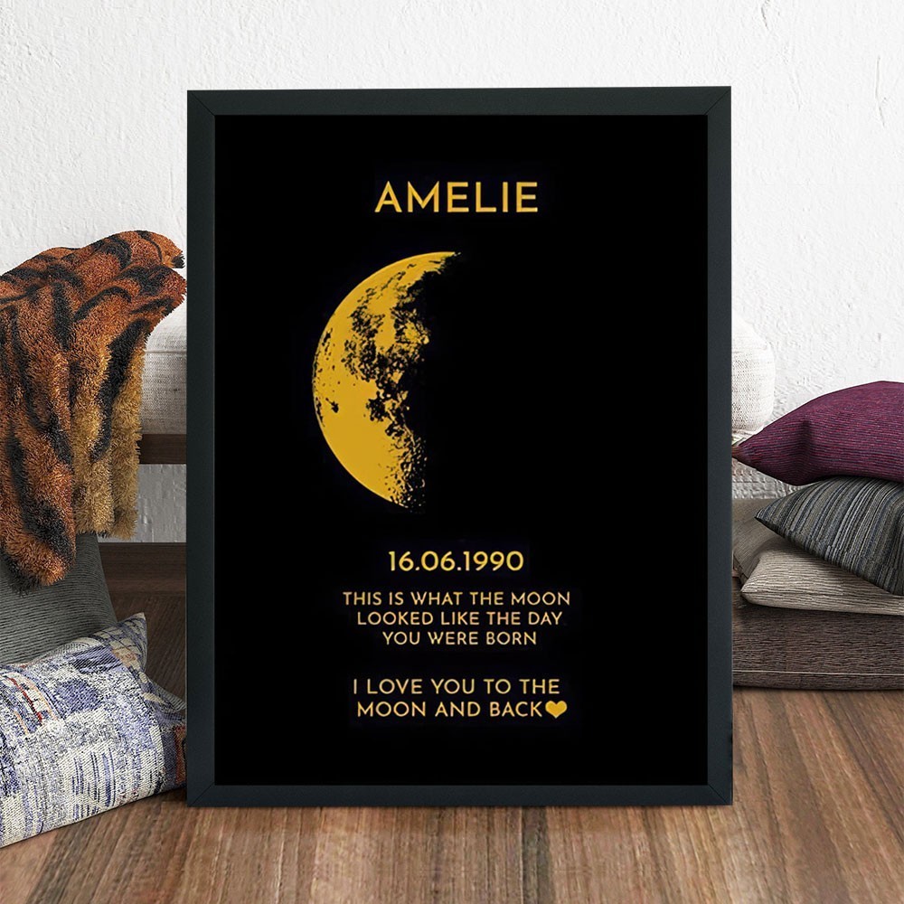 Custom Moon Phase Print Frame Sign Birthday Gift For Couple Unique Anniversary Gift Ideas Valentine's Day Gifts for Her Him
