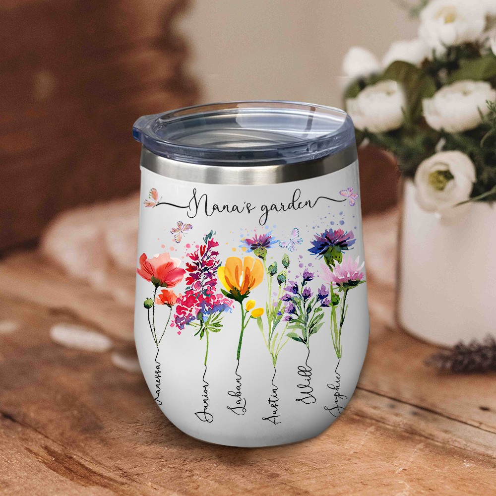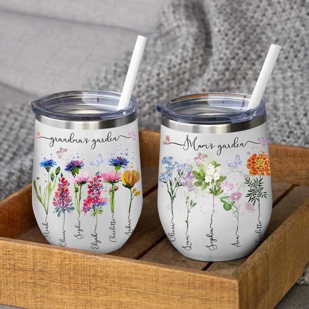 Custom Mum's Garden Birth Flower Wine Tumbler with Names Gifts for Grandma Mum Mother's day Gift Ideas