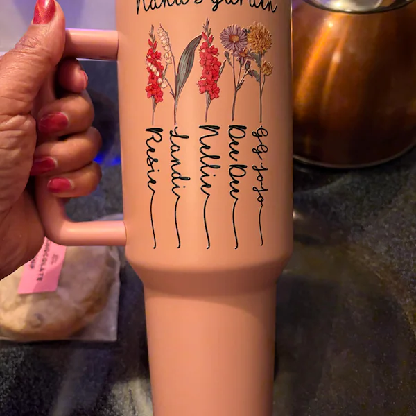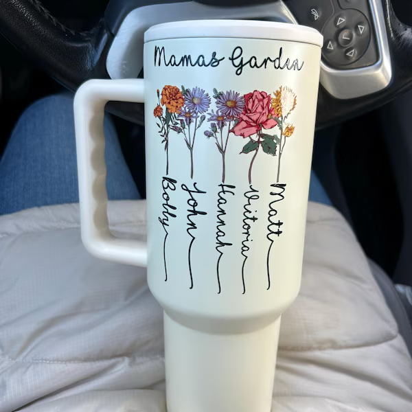 Custom Mum's Garden Birth Month Flower Tumbler with Kids Names Gifts for Mum Grandma New Mum Gift Unique Mother's Day Gift