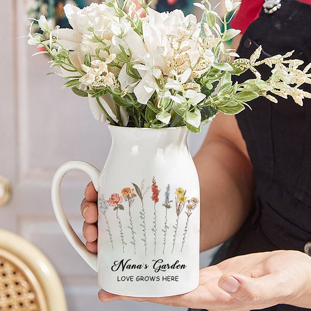 Custom Mum's Garden Love Grows Here Birth Flower Vase Meaningful Gift Ideas for Mum Grandma