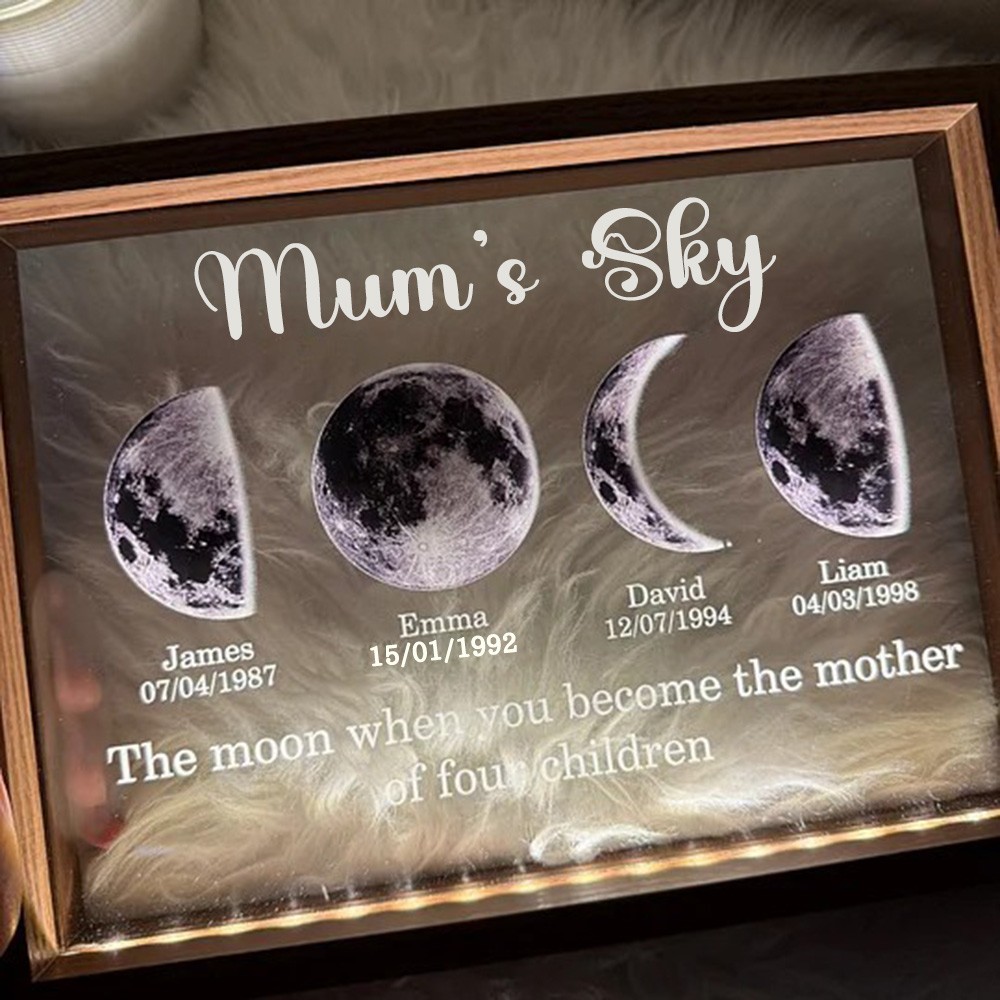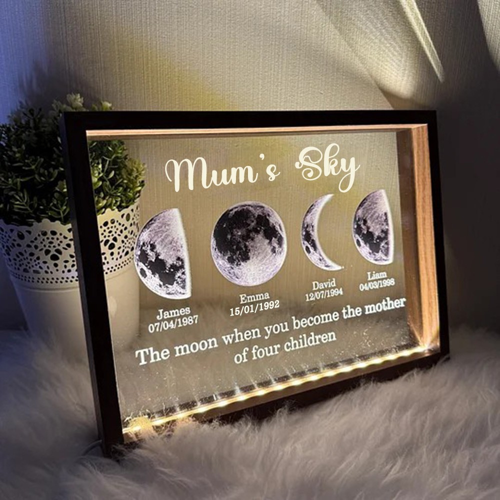Custom Mum's Sky Moon Phase Night Light Frame with Kids Names Unique Gifts for Mum Mother's Day Gift Ideas