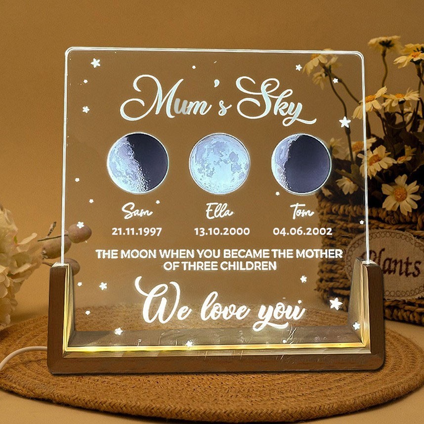 Custom Mum's Universe Moon Phase Night Light By Date with Kids Names Unique Gifts for Mum Mother's Day Gift Ideas