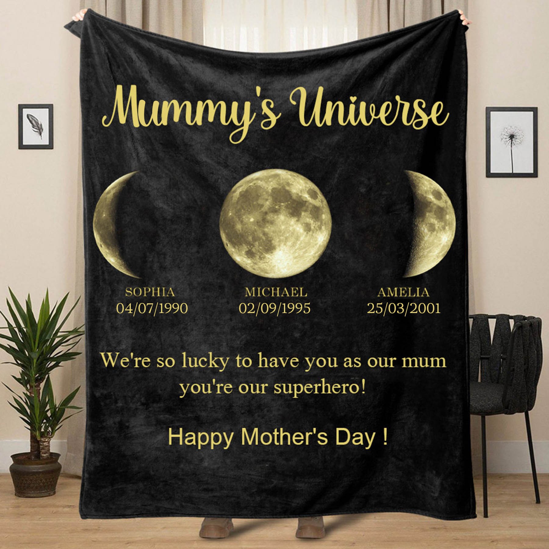 Custom Mummy's Sky Moon Phase Blanket Heartful Gift For Mum Best Mother's Day Gift Ideas