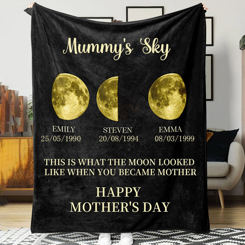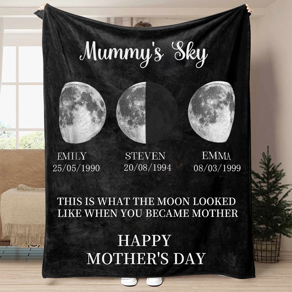 Custom Mummy's Sky Moon Phase Blanket With Kids Names Gift For Mum Unique Mother's Day Gift Ideas