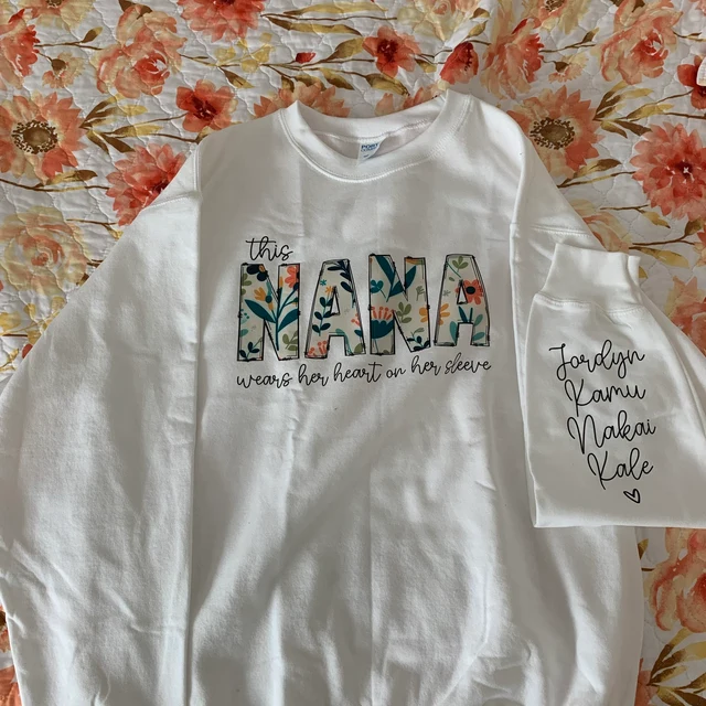 Custom Nana Embroidered Sweatshirt Hoodie with kids Names On The Sleeve Mother's Day Gift