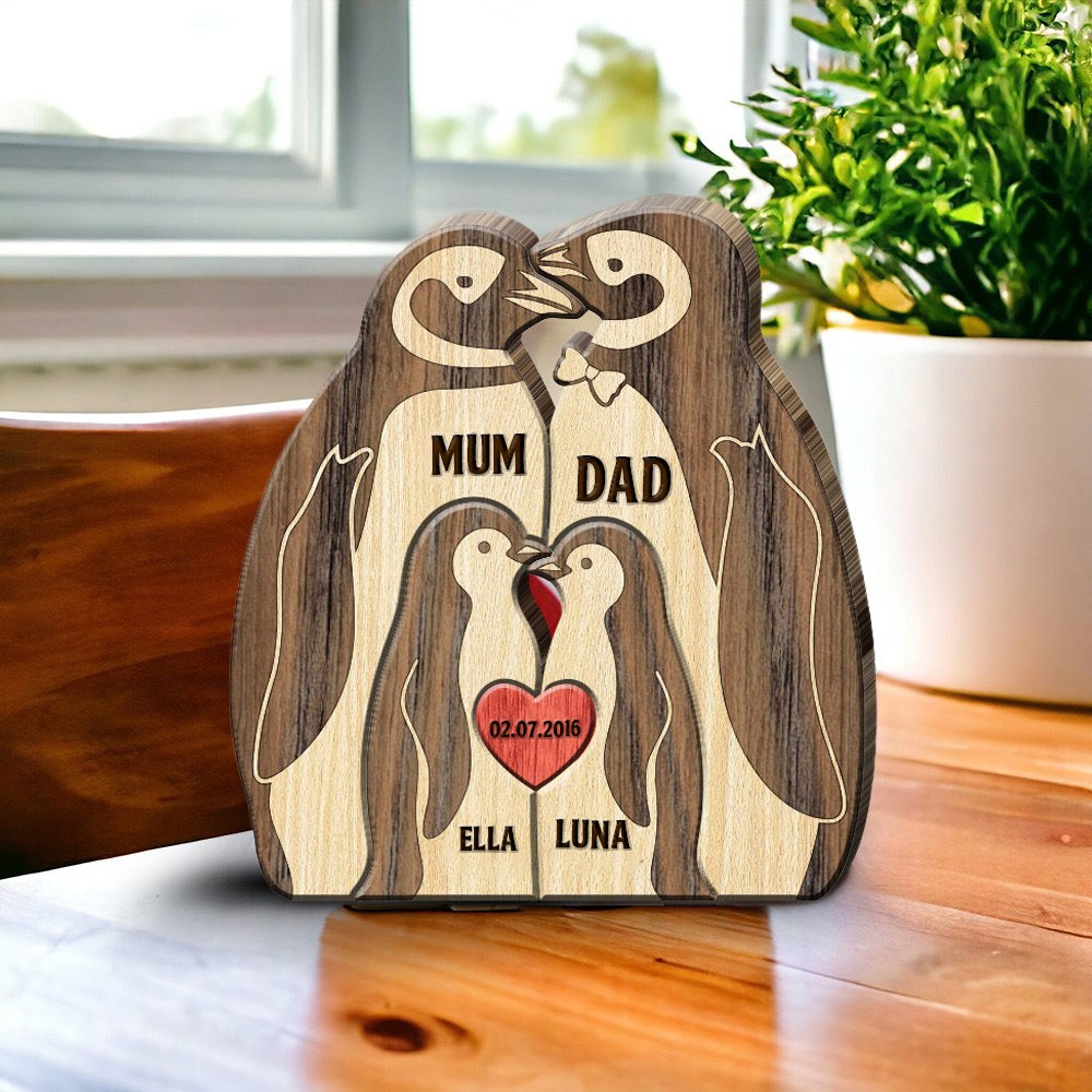 Custom Penguin Family Puzzle Wooden Sign With Names Mother's Day Gift Ideas