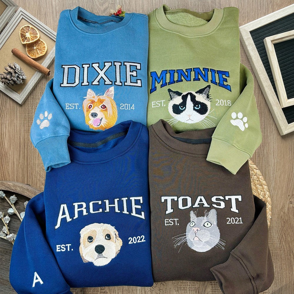 Custom Pet Cat Portrait Photo Embroidered Sweatshirt Personalised Cat Gifts Unique Gifts for Cat Lovers Christmas Gift
