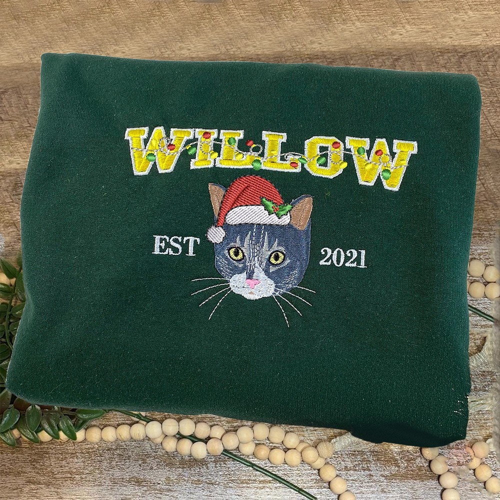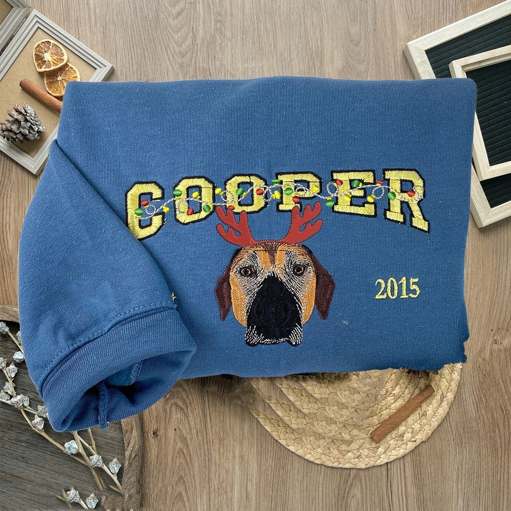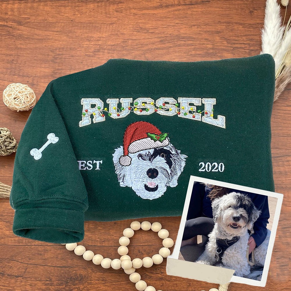 Custom Pet Christmas Embroidered Portrait Photo Sweatshirt Unique Gifts for Dog Owners Christmas Gift for Pet Lovers