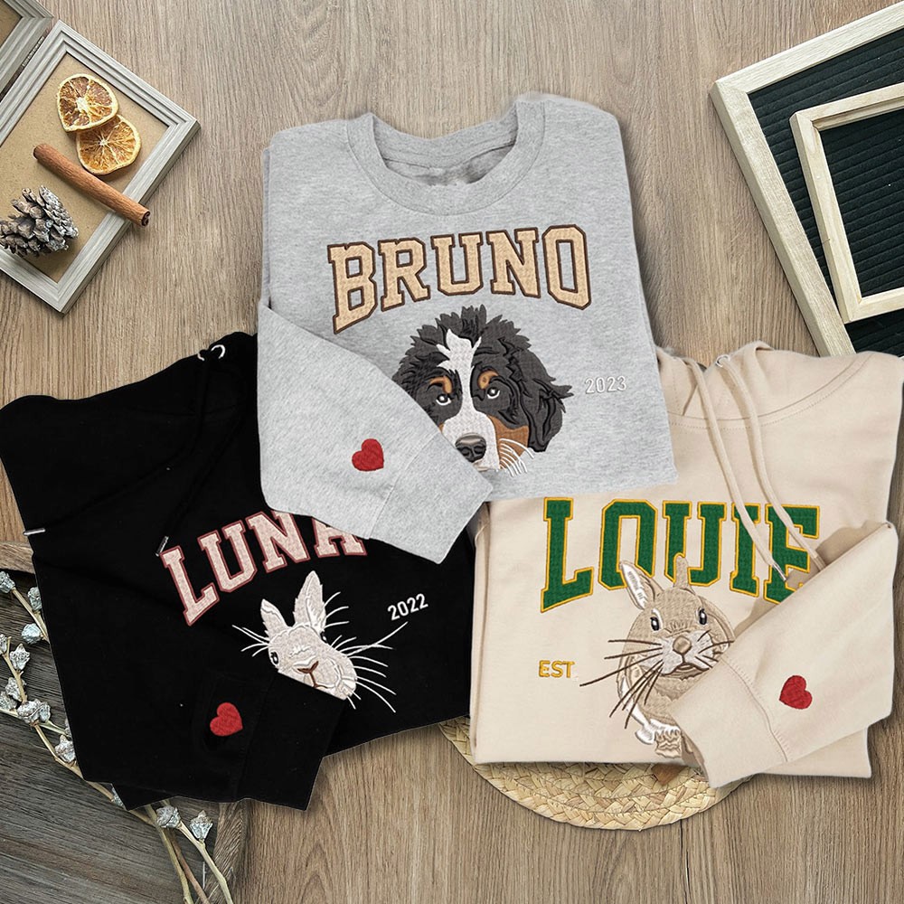 Custom Pet Dog Embroidered Sweatshirt with Dogs Face on It Gifts for Dog Owners Christmas Gift Ideas