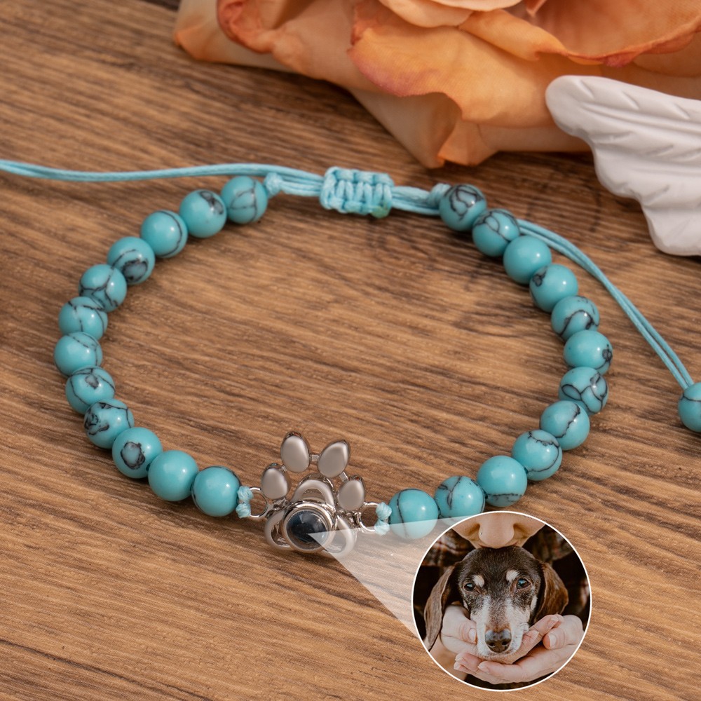 Custom Pet Paw Photo Projection Beaded Bracelet with Picture Inside Keepsake Gifts For Pet Lover