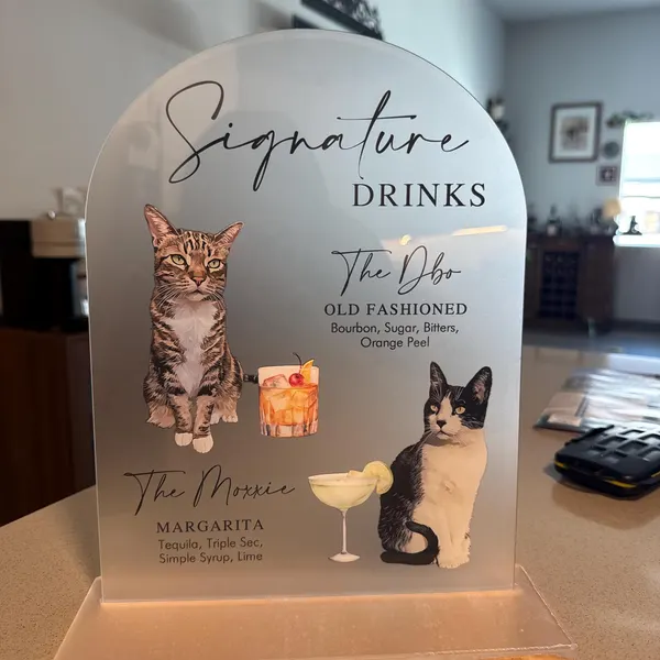 Custom Pet Portrait Signature Drink Sign Acrylic Dog Cat Wedding Signature Drinks Menu Sign