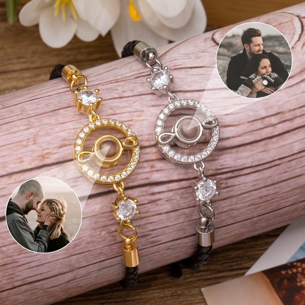 Custom Round Photo Projection Bracelet with Picture Inside Unique Gift For Couple Keepsake Gift For Soulmate