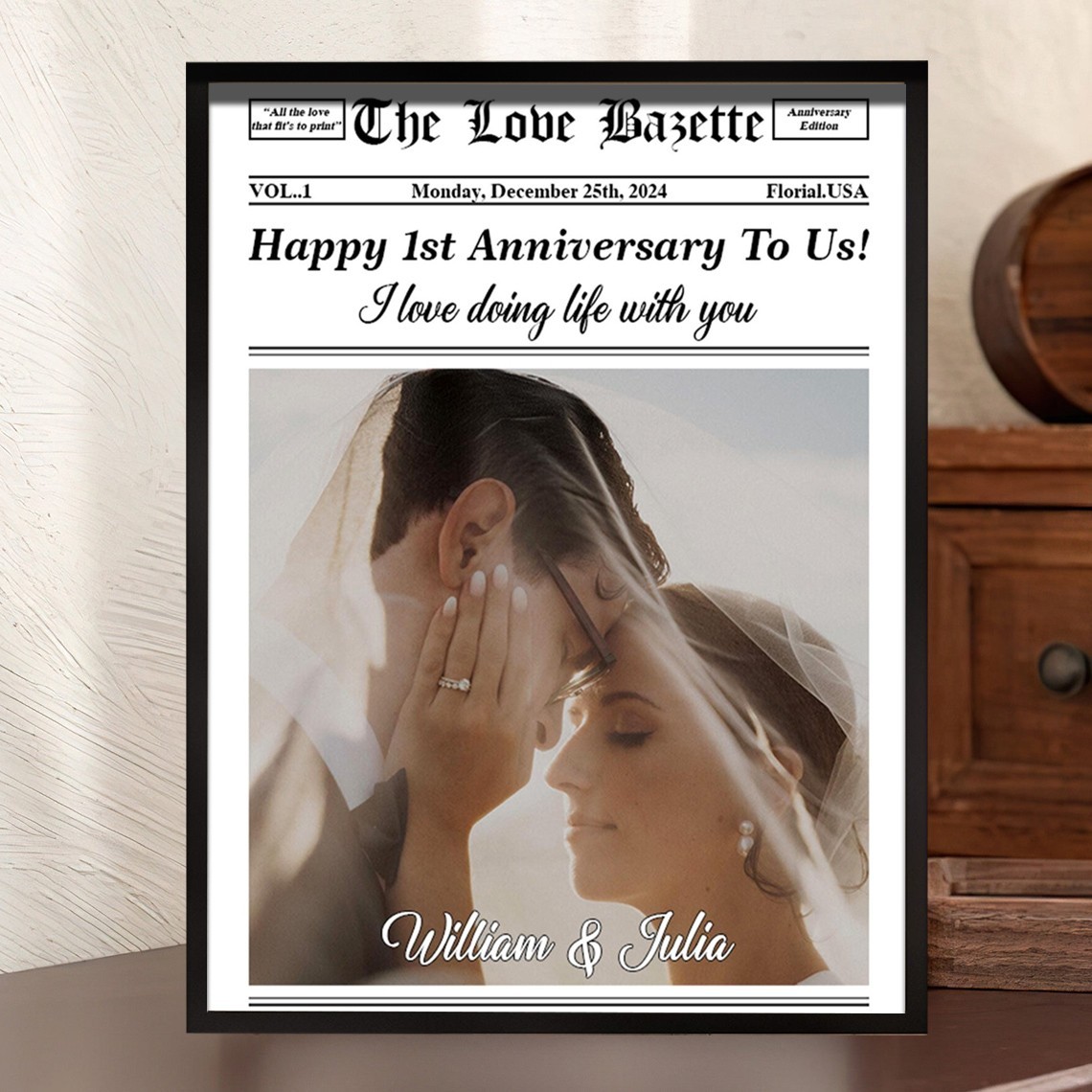 Custom Wedding Newspaper Print Frame Unique Gifts for Wife Husband Personalised Wedding Anniversary Gift