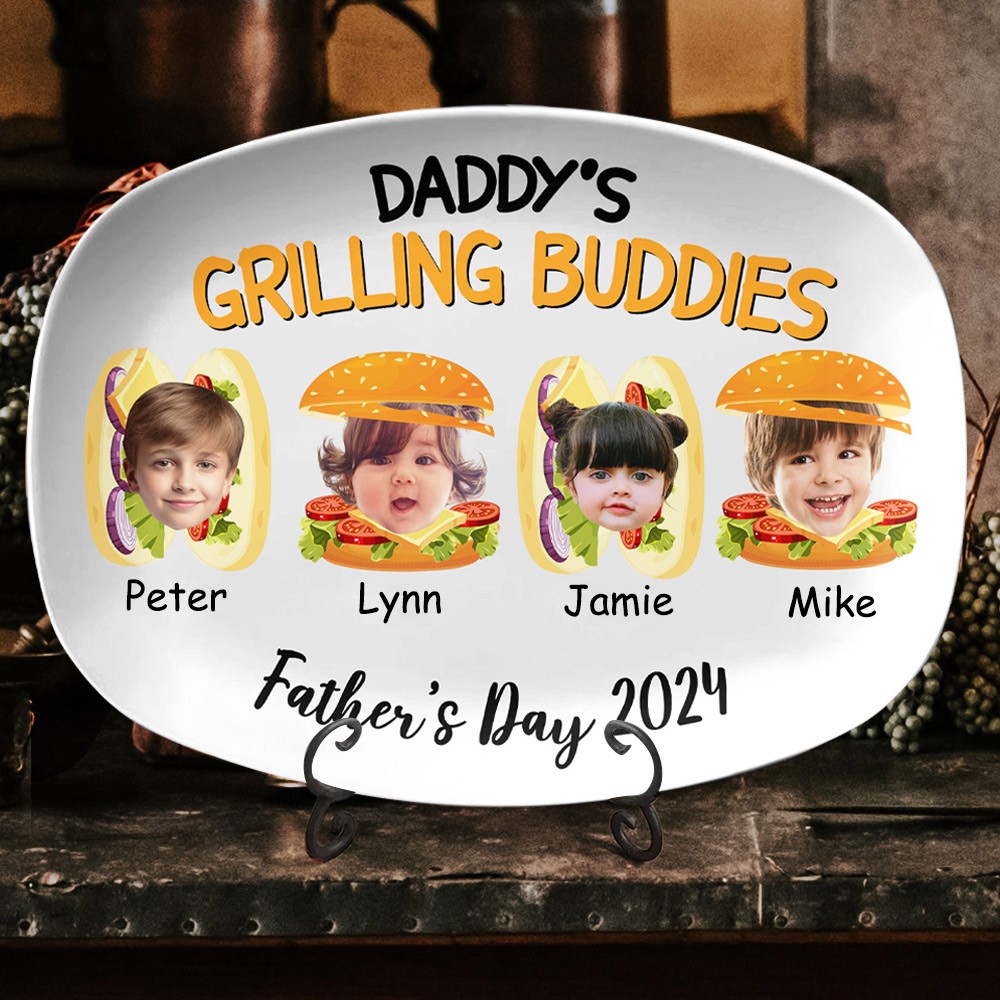 Daddy's Grilling Buddies Personalised Grilling Plate with Photo and Kids Name Funny Gifts for Dad Father's Day Gift