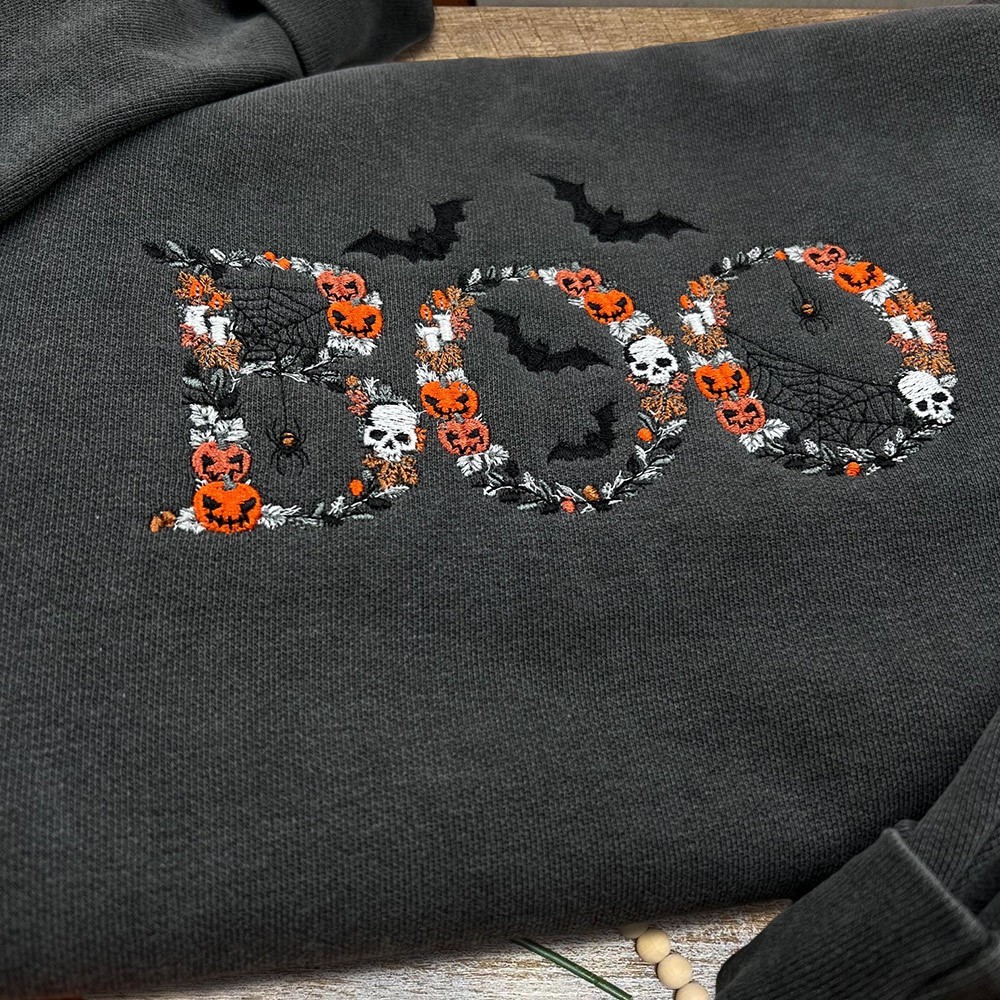 Embroidered Boo Sweatshirt Cute And Scary Crewneck Unique Halloween Gift Ideas