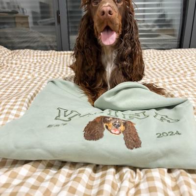 Embroidered Pet Portrait Photo Sweatshirt Custom Dog Hoodie with Photo and Name for Pet Lovers Gifts for Dog Owners