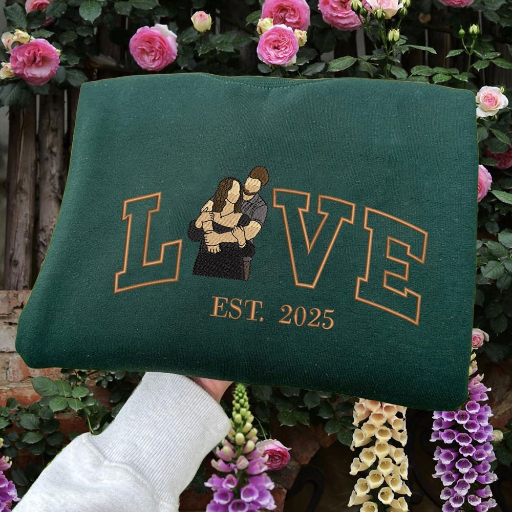 Embroidered Portrait Sweatshirt from Photo Custom Couple Matching Sweatshirt Anniversary Gifts Valentine's Day Gift for Her