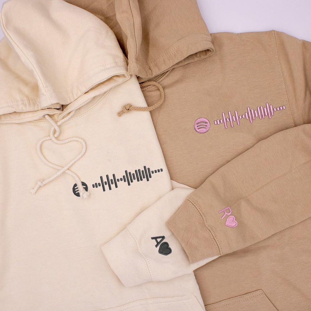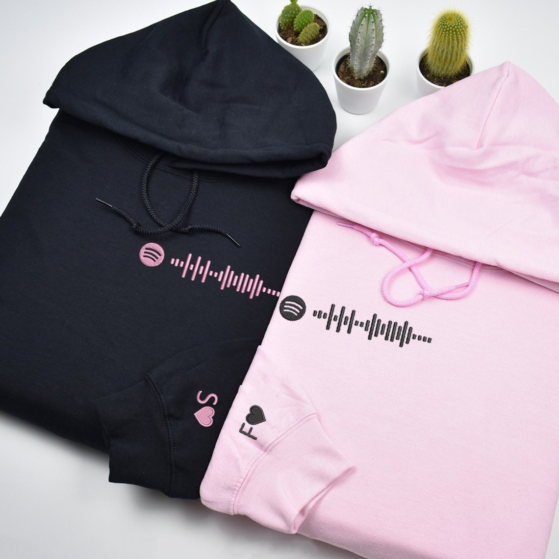 Embroidered Spotify Code Hoodie Custom Couples Matching Hoodies for Anniversary Valentine's Day Gifts Unique Gift for Couples