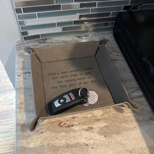 Empty Your Pockets Daddy Personalised Engraved Leather Valet Tray for Dad Birthday Gift for Him Christmas Gifts
