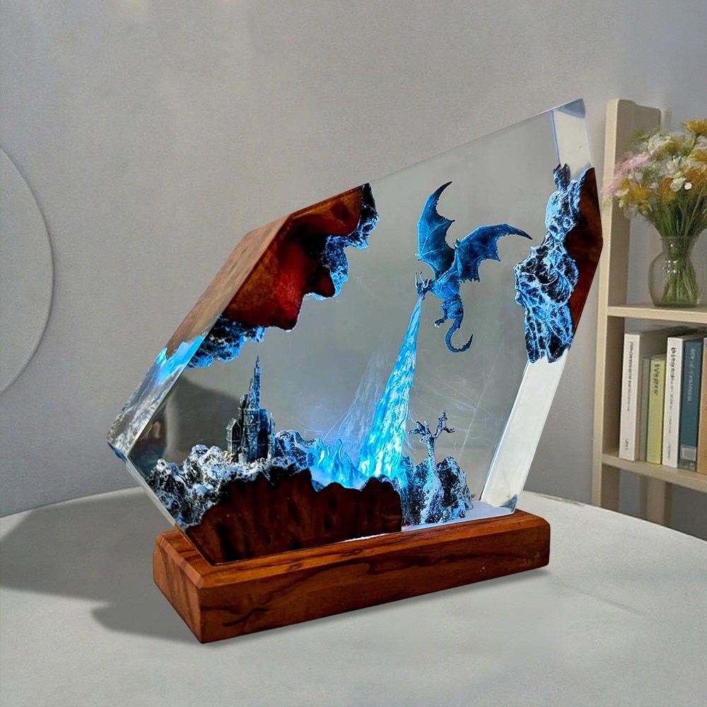 Fire Dragon Resin Wood Lamp Halloween Gift for Him Birthday Gift Ideas