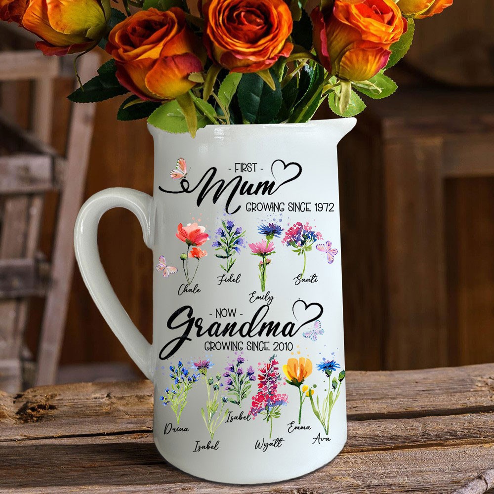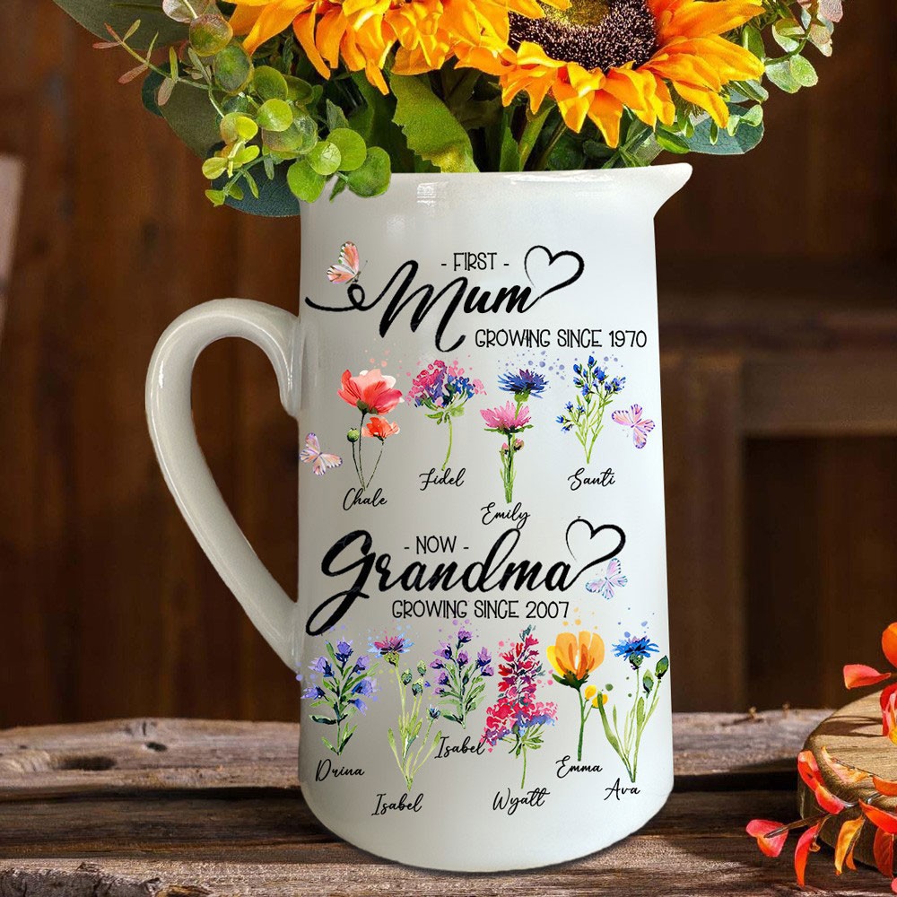 First Mum Now Grandma Birth Month Flower Vase with Kids Names Custom Gifts for Mum Grandma Mother's Day Gift