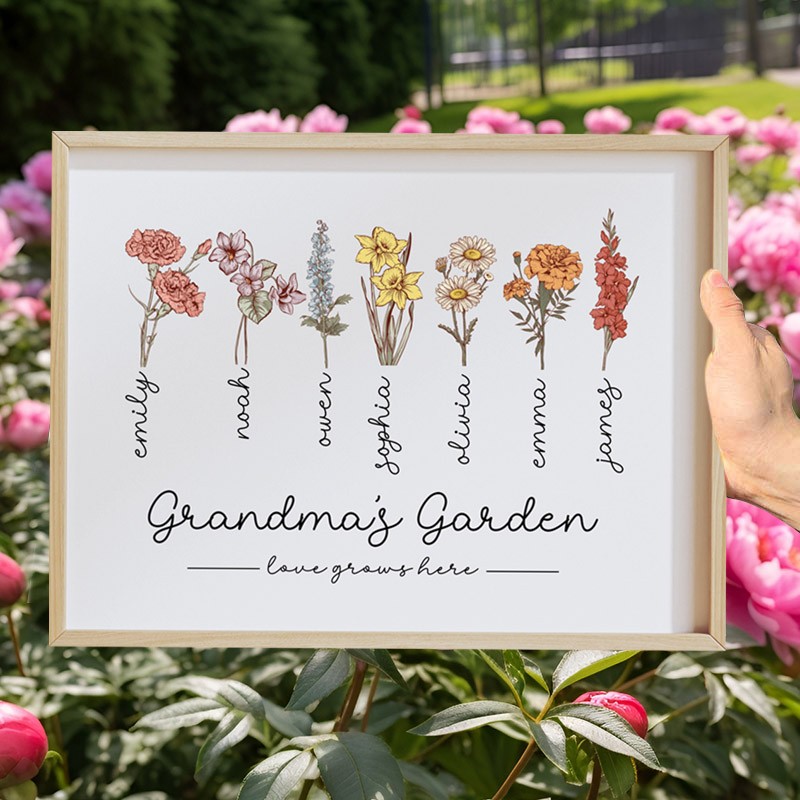 Grandma's Garden Birth Month Flower Frame With Kids Names Personalised Gifts For Mum Grandma Christmas Gift Ideas