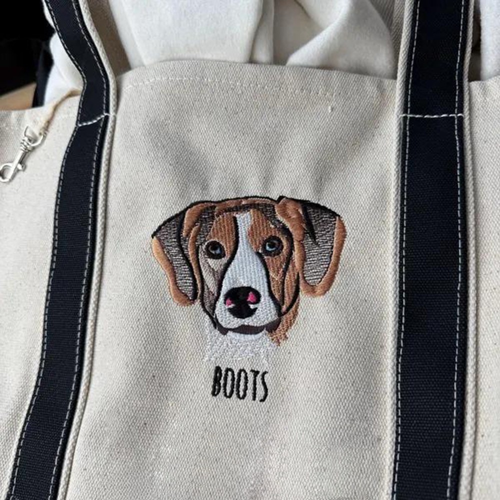 Custom Embroidered Pet Portrait Tote Bag Memorial Gifts for Pet Lovers Gift Ideas for Dog Lover