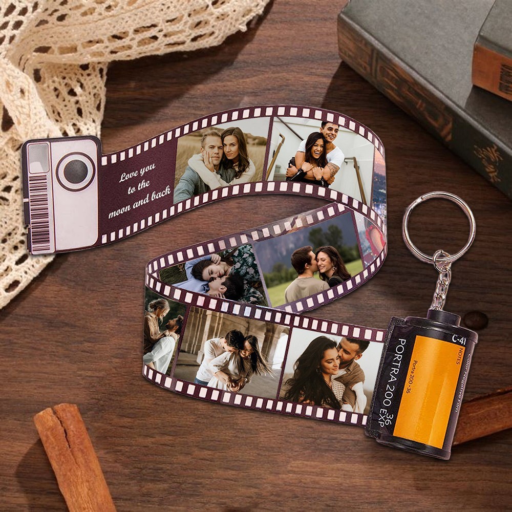 I Love You To The Moon and Back Custom Photo Film Roll Keychain Wedding Anniversary Gift for Her Him Valentine's Day Gifts for Couple