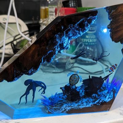 Octopus and Divers Resin Night Light Epoxy Wood Lamp Birthday Gifts Unique Christmas Gift Ideas