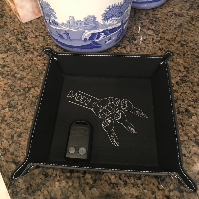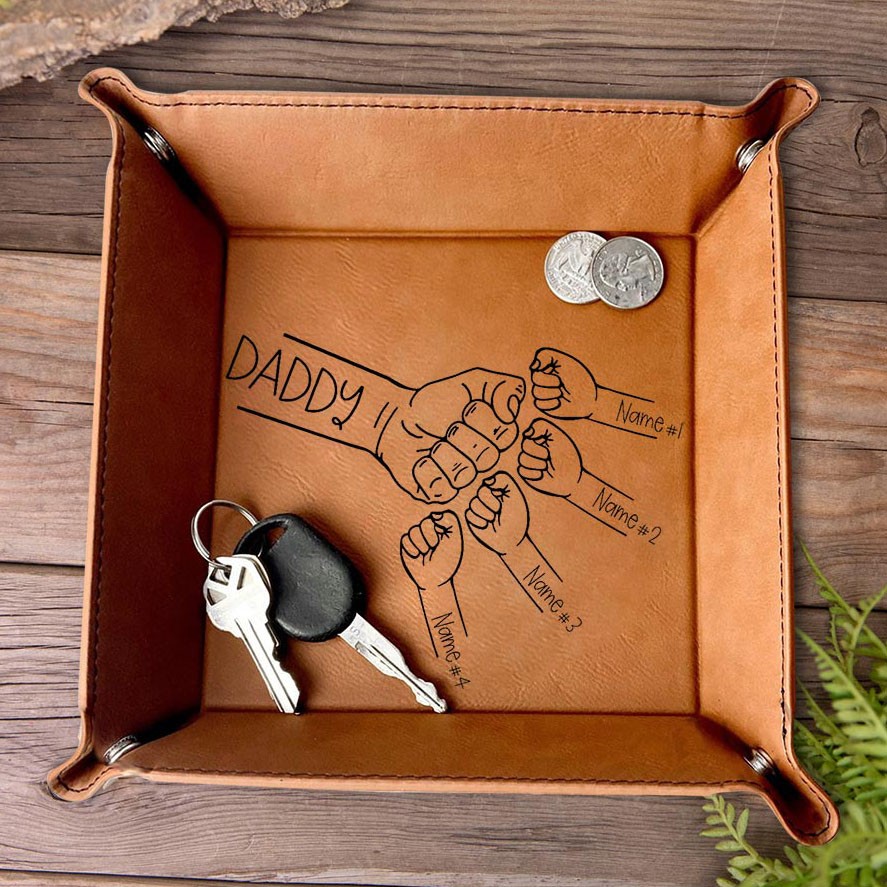 Personalised Engraved Fist Bump Leather Valet Tray Gifts for Dad Grandpa Christmas Gift for Him New Dad Gift