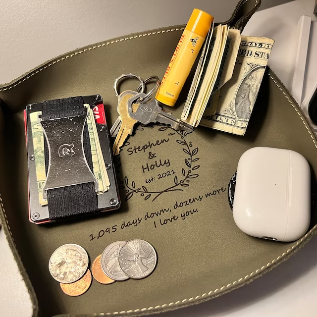 Personalised Engraved Leather Valet Tray Anniversary Gift for Husband Christmas Gifts for Her Him