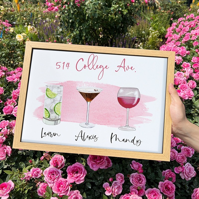 Personalised Roommates Drinks Art Print Frame with Names College Apartment Dorm Art Unique Gifts for Friends