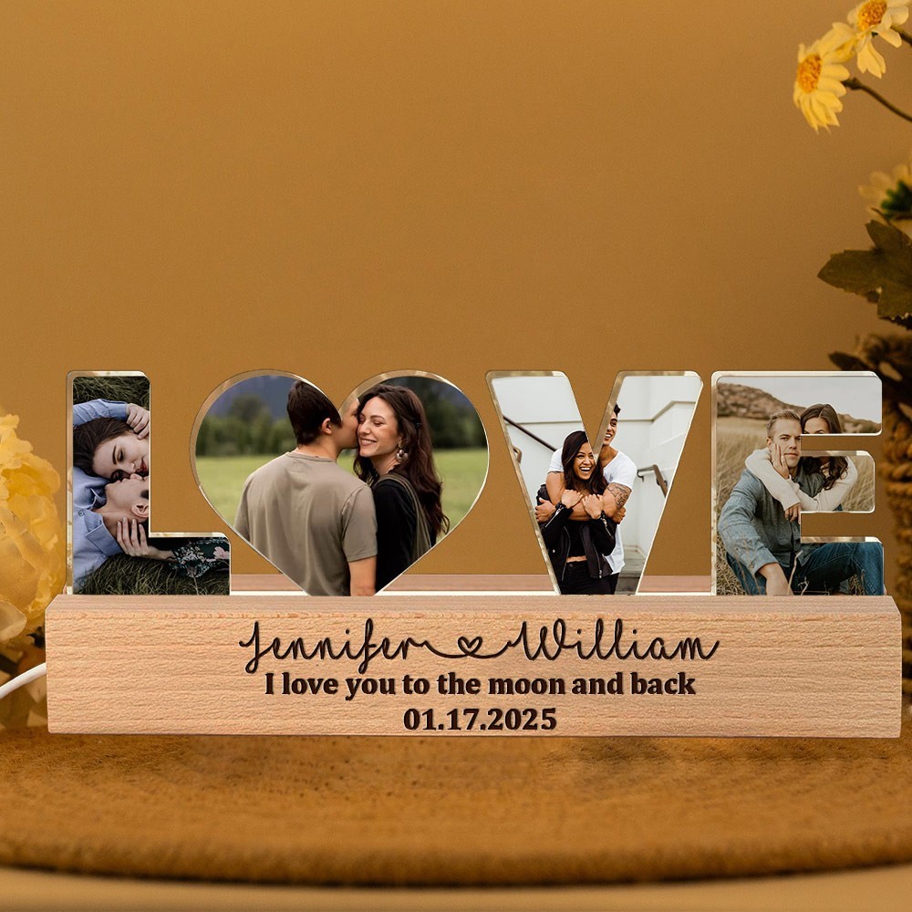 I Love You To The Moon and Back Custom Couple Photo Collage Night Light Gifts for Anniversary Birthday Valentine's Day
