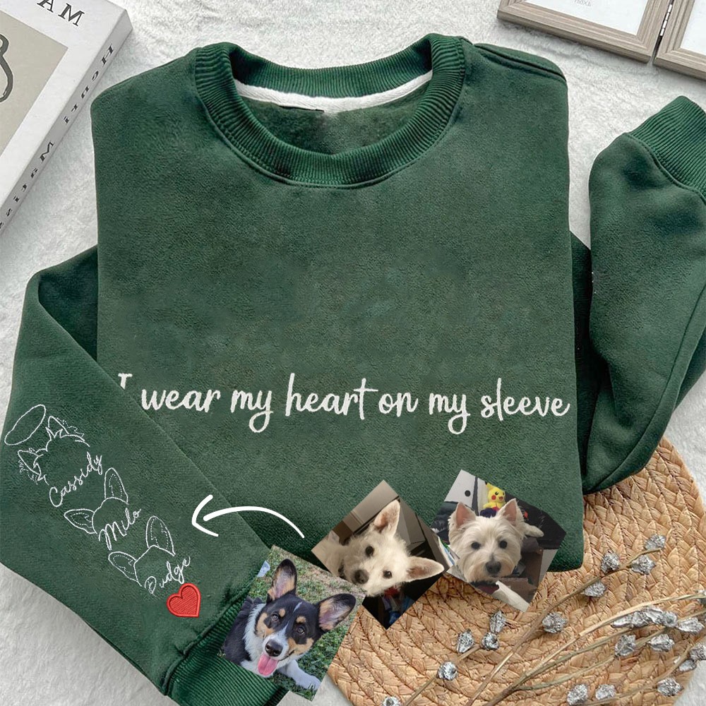 I Wear My Heart on My Sleeve Custom Embroidered Pet Ears Outline Sweatshirt Hoodie Gifts for Dog Lover
