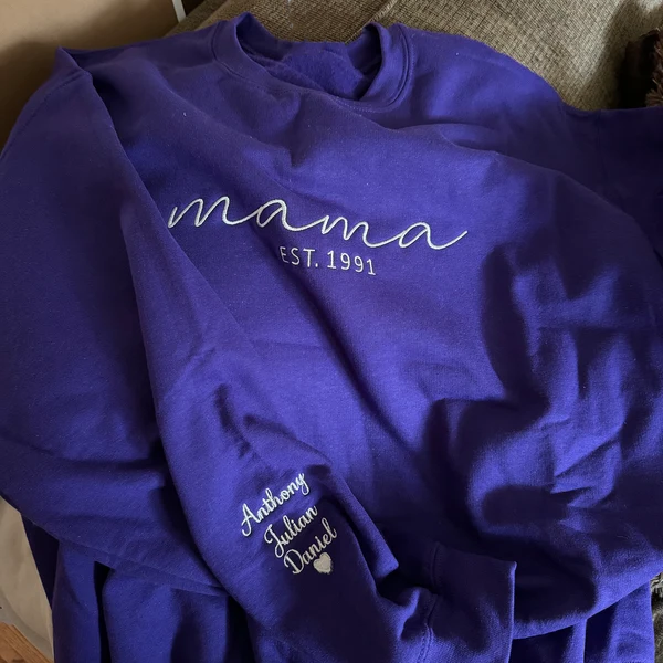 Mama Embroidered Sweatshirt with Kids Names on Sleeve Personalised Unique Gifts for Grandma Mum Mother's Day Gift Ideas